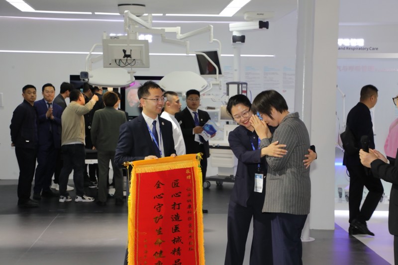 2025 年春季 CMEF 开幕首日,王女士手捧锦旗来到谊安展位:"这半年来,父亲的血氧饱和度从 82% 稳定在 95% 以上,现在每天能做一些简单的运动!" 她眼含热泪分享道,从最初对家用呼吸机的忐忑,到如今亲眼见证家人生命质量的提升,谊安团队 "从展会到床头" 的全周期服务让她真正感受到 "医疗器械不仅是冰冷的设备,更是承载希望的生命纽带"。