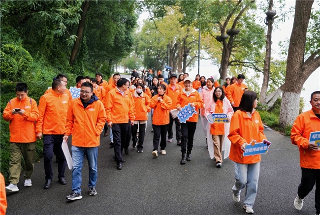 尽管天空飘着细雨,但在场医护人员、患者及家属的热情丝毫未减,一同前往东湖风景区,开启了“同一天,一起行-美乐时刻,与爱同行”健步走环节。