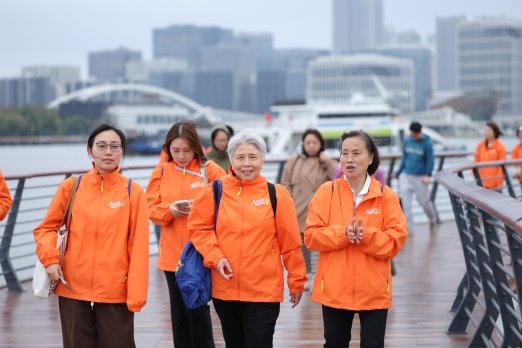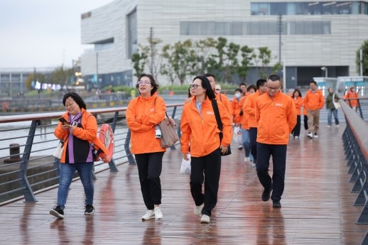 科普环节后,专家、患者与家属一同前往徐汇滨江步道,开启了“同一天,一起行-美乐时刻,与爱同行”健步走环节。下午的滨江步道人不多,沿途江风轻拂,空气清新。身着橙色冲锋衣的健步走队伍沿江铺开,仿佛为滨江步道染上了一道温暖的橙色。大家边走边聊,拍照打卡,欢声笑语不断,活动在轻松愉快的氛围中圆满结束。